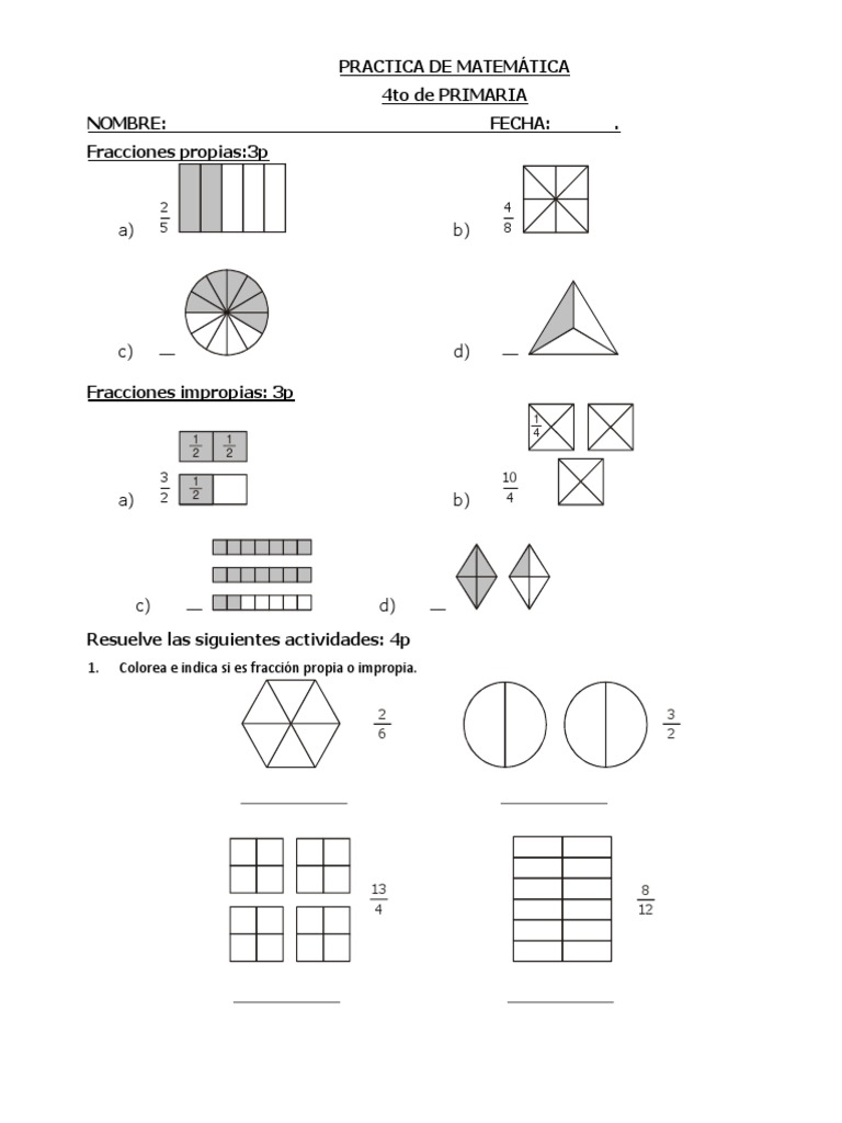 Más fichas de matemática para. En las fracciones impropias, el numerador es mayor que el denominador. En las fracciones impropias el numerador (el número que está arriba en la fracción) es siempre mayor que su denominador (el que está abajo), por lo que si bien las operaciones entre fracciones propias e impropias se realizan de la misma manera, existen ciertas características diferenciales en. Convertir fracciones mixtas a impropias, e impropias a mixtas fracciones aparentes. Pero en matemáticas las fracciones impropias son mejores que las fracciones mixtas.